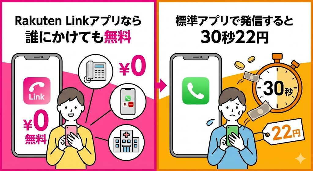 標準アプリを使わずに「Rakuten Link」だけを使えば、通話料を0円にできるんです。
